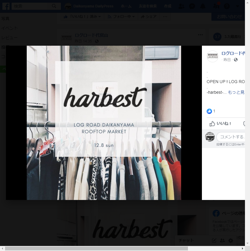 LOG ROAD「マーケットイベント -harbest-」 2019.12.07 FOR VISIT Tweet Share LOG ROAD(代官山町13-1)では、12月8日(日)に、マーケットイベント「-harbest-」を開催するそうです。 ..OPEN UP ! LOG ROAD…ログロード代官山さんの投稿 2019年12月5日木曜日 Tweet Share FOR VISIT, TIMELINE イベント, ファッション, 雑貨 コメント: 0 bacchus gallery bun「フラメンコギター LIVEイベント... LOG ROAD「OPEN UP! LOG ROAD DAIKANYAMA... ピックアップ記事 FOR STUDY 旧山手通り 2021.07.17 2021.08.03FOR STUDY, SCENERIES FOR LIFE メゾン代官山解体工事説明会 2020.06.19 2020.06.22FOR LIFE, FOR STUDY, REPORTS FOR STUDY 同潤会代官山アパートメントの完成 2020.09.13FOR STUDY, HISTORY 関連記事一覧 FOR VISIT 「江村あるめ人形展」 2022.11.01 FOR VISIT bacchus gallery bun Martin個展「君... 2022.06.10 FOR LIFE 代官山ティーンズ・クリエイティブ 『トニーさんと英語で遊ぼう... 2022.09.27 FOR VISIT PIZZA SLICE 「PIZZA SLICEとReebo... 2021.04.14 FOR LIFE 代官山ティーンズ・クリエイティブ 『オリジナルのリボンで、心... 2021.02.03 FOR VISIT Saturdays NYC 「サタデーズ ニューヨークシティ... 2022.07.13 FOR VISIT UES 「クリスマスキャンペーン2020」 2020.11.08 FOR VISIT COCOMA「5周年記念サンクスセール」 2019.12.12 コメント ( 0 ) トラックバック ( 0 ) この記事へのコメントはありません。 この記事へのトラックバックはありません。 トラックバック URL