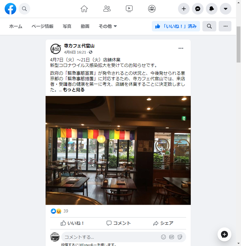 新型コロナウイルス感染症(COVID-19)拡大防止のために長期休業を決めた代官山の店舗 2020.04.10 FOR STUDY Tweet Share 代官山では、2020年4月9日までに以下のお店が新型コロナウイルス感染症(COVID-19)拡大防止のために長期休業することを決めました。 www.facebook.com_abcpizzaslice_posts_2779278198775914 www.facebook.com_ao.daikanyama_posts_1888219574643781_0 www.facebook.com_arroceriasalyamor_posts_2627691314005879 www.facebook.com_artfrontgallery_posts_2935780279852152 www.facebook.com_ARTS.SCIENCE.co.ltd_posts_2497488617024083 www.facebook.com_ata.daikanyama_posts_2906310572794096 www.facebook.com_bonjourrecords01_posts_2254737991295433 www.facebook.com_BOTANIZE_posts_2858081250950733_0 www.facebook.com_cafe.accueil_posts_3053829387981747 www.facebook.com_calst.tokyo_photos_a.233425353379676_2810903572298495_ www.facebook.com_CestVingtTrois_posts_3587428867953658_0 www.facebook.com_chococafe.daikanyama_posts_2956101124504881 www.facebook.com_clubhillside_posts_3523312647695315 www.facebook.com_coffeeelementaryschool_posts_3287618257955830_0 www.facebook.com_collexfanpage_posts_3172368792773837_0 www.facebook.com_descenteblanc_posts_1501737603327539 www.facebook.com_diral.tokyo_posts_3060505134014416 www.facebook.com_diy.tile_posts_3291380770885565 www.facebook.com_FLUXCAFE_posts_2844782678970930 www.facebook.com_gohempofficial_posts_3030639553622769_0 www.facebook.com_haremame2016_posts_3183194751693752 www.facebook.com_haunttky_posts_2956277811103186_0 www.facebook.com_hrm.co.jp_posts_3447637245255331 www.facebook.com_johnnyjumpup.net_posts_2957130654307202 www.facebook.com_KIJIMATAKAYUKI_posts_2664536527115903_0 www.facebook.com_ladmusician.official_posts_3097071277005135 www.facebook.com_littlecloud.japan_posts_3681001231973404 www.facebook.com_littlesuzieonline_posts_2812295808867412_0 www.facebook.com_lokogallery_posts_2655692587886050 www.facebook.com_MOTHERLIP_posts_2345865355516635_0 www.facebook.com_MR.FRIENDLYcafe_posts_3089692004397229 www.facebook.com_nenohoshi_posts_3014528005257609 www.facebook.com_niwani00_posts_2779240342182763 www.facebook.com_Official.KidBlue_posts_1945199078938648_0 www.facebook.com_pachongroupe_photos_a.130975786976741_3607499635990988_ www.facebook.com_patinasvintagecloset_posts_3196250750399674_0 www.facebook.com_permalink.php_story_fbid=140585964143018&id=104085197793095&substory_index=0 www.facebook.com_permalink.php_story_fbid=808040099684447&id=374595016362293&substory_index=0 www.facebook.com_permalink.php_story_fbid=2592804247492593&id=616968665076171 www.facebook.com_permalink.php_story_fbid=2671835316371603&id=1667935803428231 www.facebook.com_permalink.php_story_fbid=2806173062801261&id=790355841049670 www.facebook.com_permalink.php_story_fbid=2845768842125343&id=263564483679138 www.facebook.com_permalink.php_story_fbid=2948462948573972&id=342016545885305&substory_index=0 www.facebook.com_permalink.php_story_fbid=2951761498223198&id=246112818788093&substory_index=0 www.facebook.com_permalink.php_story_fbid=3060016930727197&id=417809784947938&substory_index=0 www.facebook.com_ReplayJapan_posts_2715649758562847_0 www.facebook.com_ricci.everyday_posts_2666077893714878 www.facebook.com_Ricochicaroom_posts_3663794847028639 www.facebook.com_rootote.jp_posts_3154910734522086 www.facebook.com_sodabar.jp_posts_3689614544445000_0 www.facebook.com_sowi.jewelry_posts_3670971979611230_0 www.facebook.com_suitbar.jp_posts_2612783002340660_0 www.facebook.com_teracafeculture_posts_3423981420949486 www.facebook.com_UesJeans_posts_3132402630116864 www.facebook.com_upstairsgallery_posts_2744515442313155 www.facebook.com_WeekendGarageTokyo_posts_2878729105547028 blog.livedoor.jp_congesloisir_archives_52121219.html daikanyama.juniemoon-shop.com__eid=1630 gullam.jp_blog_133882.html nerds.blog111.fc2.com_blog-entry-328.html redoute.exblog.jp_30991009_ sketch-hair.jp_blog_3374_ topics.omnigod.jp__eid=291 www.roston-hair.jp_topics_%e8%87%a8%e6%99%82%e4%bc%91%e6%a5%ad%e3%81%ae%e3%81%8a%e7%9f%a5%e3%82%89%e3%81%9b_ Tweet Share FOR STUDY, FOR VISIT, REPORTS アート, インテリア, カフェ, カルチャー, ダイニング, ビューティ, ファッション, ヴィンテージ, 雑貨, 音楽 コメント: 0 Junie Moon Dakawaiidolls個展「NO DOLL , ... イル ビゾンテ 2020年春夏新作レザーアイテム ピックアップ記事 FOR STUDY 明治時代の代官山の土地利用 2019.12.26FOR STUDY, HISTORY SCENERIES EL BOCHO 2017.02.25 2020.02.21SCENERIES FOR STUDY 同潤会代官山アパートメントの完成 2020.09.13FOR STUDY, HISTORY 関連記事一覧 FOR STUDY 代官山T-SITEの10年 2021.06.04 FOR VISIT WAREHOUSE「SAMPLE SALE」 2020.03.05 FOR VISIT グリーンカレー食堂 green オープン 2022.03.03 FOR VISIT ぎゃらりー無垢里「てぬぐいを着る 2020」 2020.04.04 FOR VISIT JUN OKAMOTO / PANORMO 2020-21 ... 2020.03.18 FOR VISIT みどり荘 吉岡美樹「キッチュとキネティック」 2020.11.06 FOR VISIT LE LABO 「2021年クリスマスコフレ」 2021.10.01 FOR VISIT here オープン 2021.04.17 コメント ( 0 ) トラックバック ( 0 ) この記事へのコメントはありません。 この記事へのトラックバックはありません。 トラックバック URL 返信をキャンセルする。 名前 ( 必須 ) E-MAIL ( 必須 ) ※ 公開されません URL