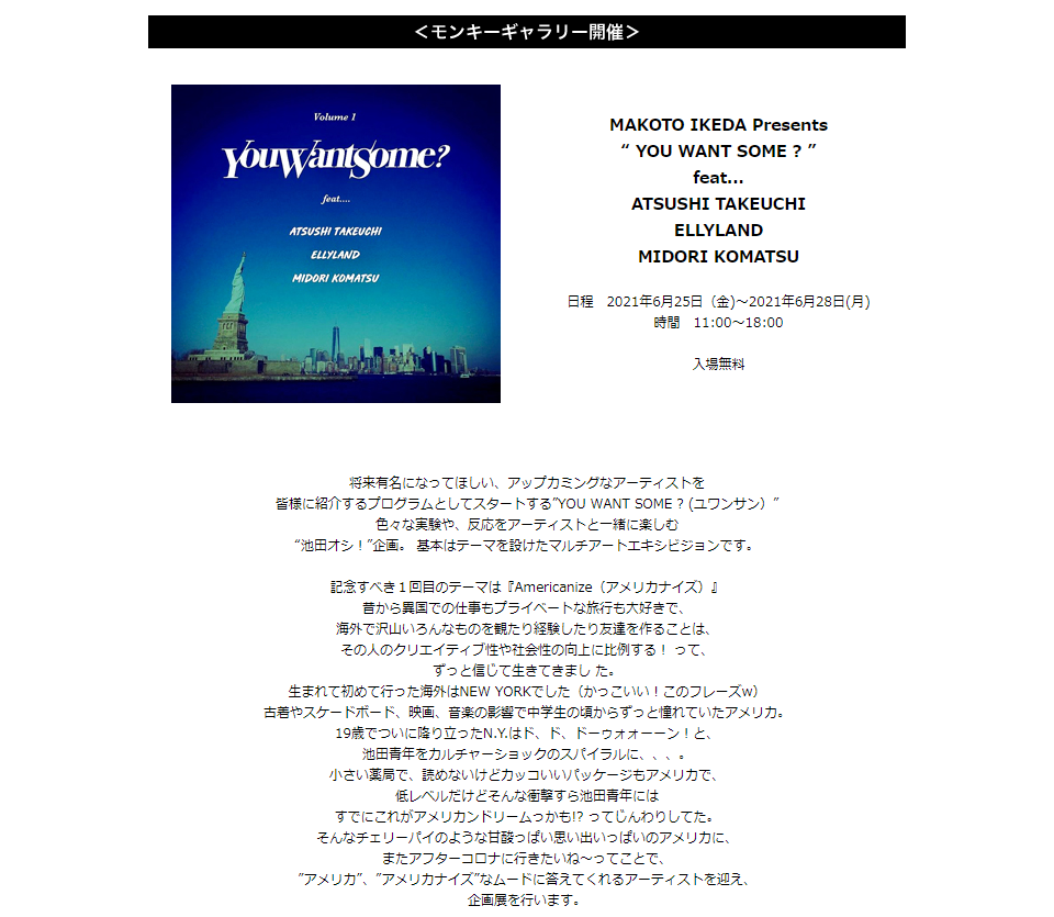 MONKEY GALLERY 「MAKOTO IKEDA Presents“ YOU WANT SOME ? ”」
