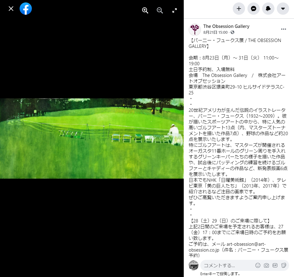 The Obsession Gallery(猿楽町29-10)では、8月23日(月)~31日(火)の期間、「バーニー・フュークス展」を開催しているそうです。